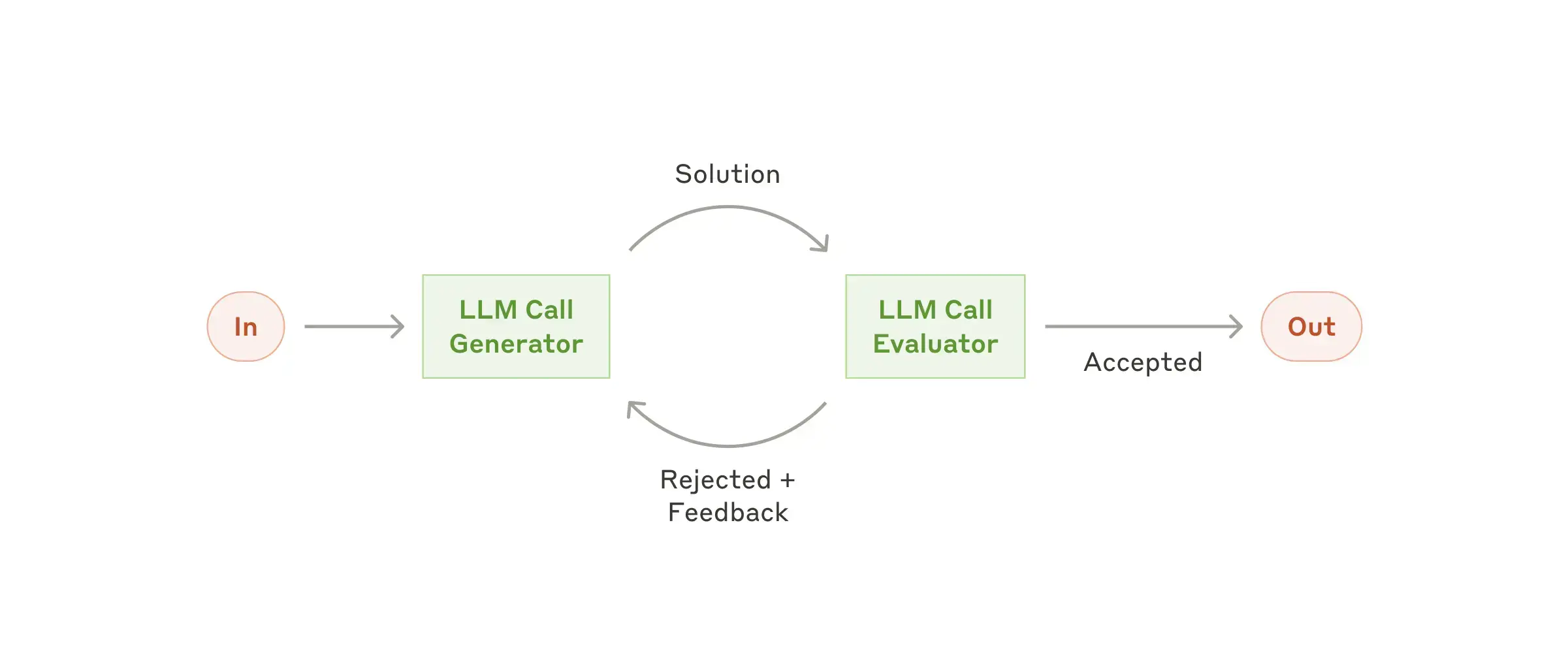 one LLM call generates a response while another provides evaluation and feedback in a loop.