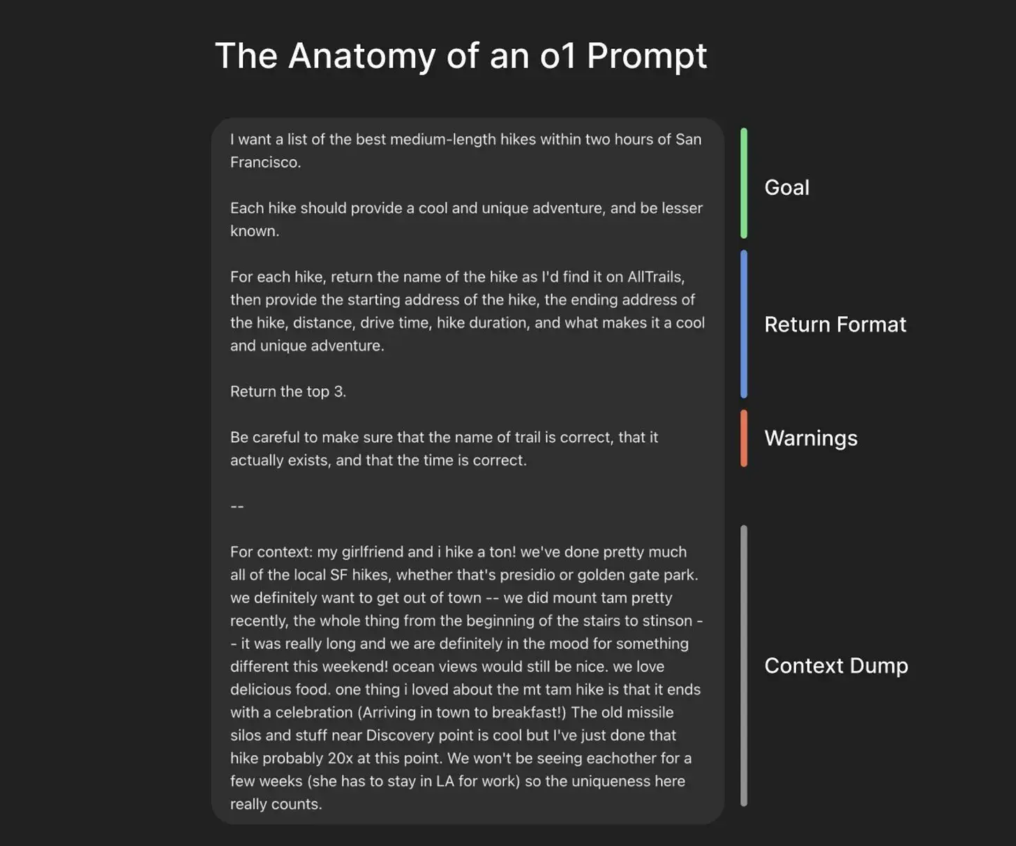 1. Don’t Write Prompts; Write Briefs o1 will just take lazy questions at face value and doesn’t try to pull the context from you. Instead, you need to push as much context as you can into o1.